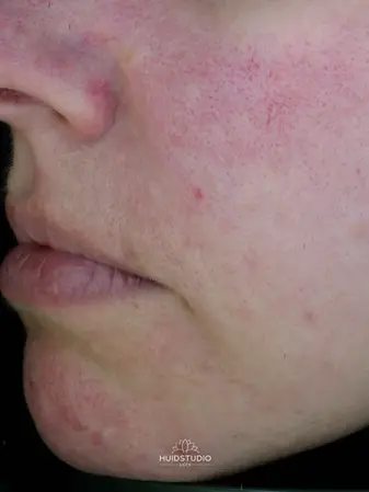 In de eerste maanden werken we aan herstel en stabilisatie. Naarmate het traject vordert zie je de huid rustiger worden, ontstekingen afnemen en de huidstructuur verbeteren.